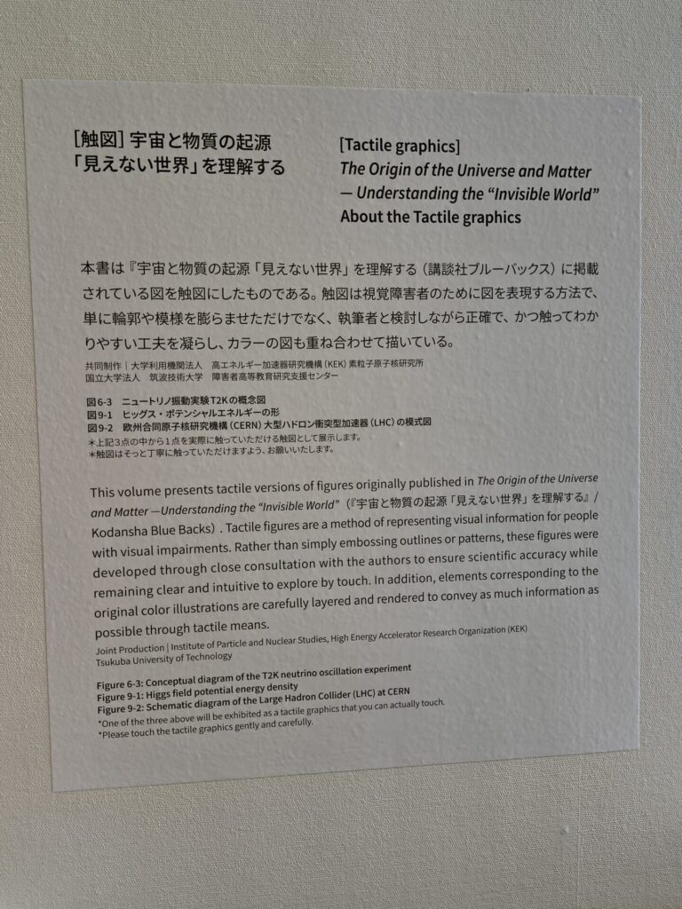 特に唸らされたのが、筑波技術大学の視覚障害のある学生向けの教材でした。水(H2O)の生成を「触感」だけで表現する試み。「宇宙と物質の起源」という壮大なテーマを、五感に訴える形にまで凝縮する。これこそが、説明不要のコミュニケーションではないでしょうか。